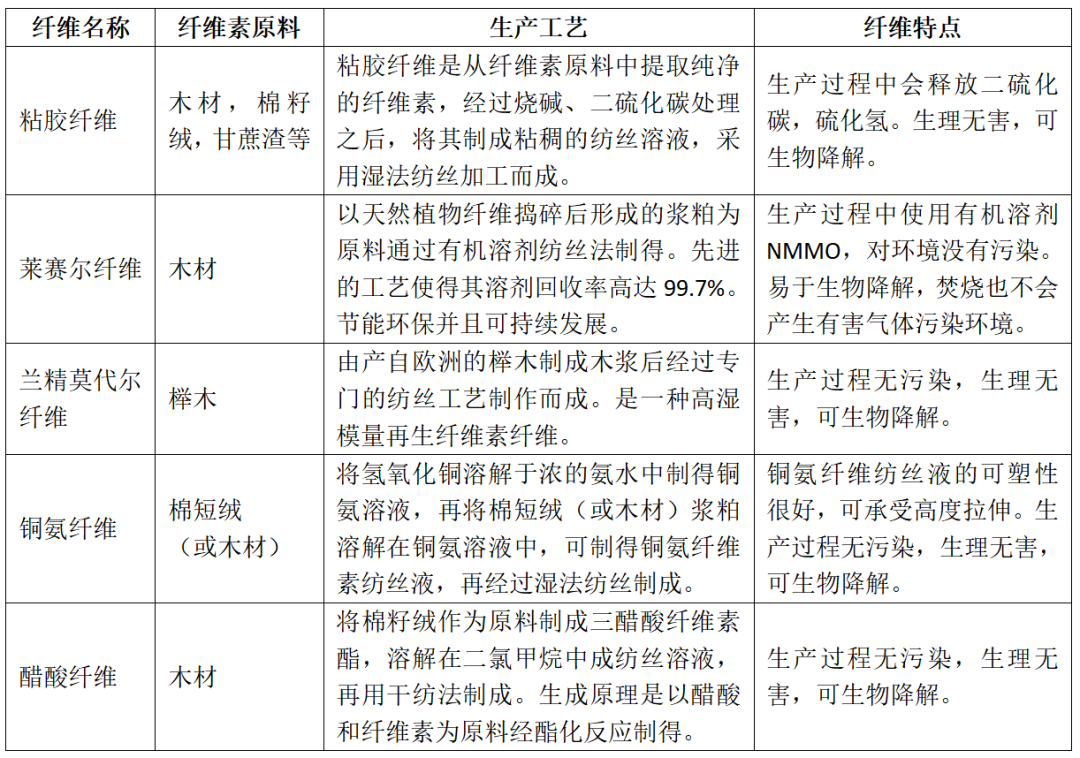 再生纤维素纤维都是以天然纤维为原料加工制成的,具备天然纤维和合成纤维的双重性能,我们常见的再生纤维素纤维有粘胶、莱赛尔、兰精莫代尔、铜氨纤维、醋酸纤维等(注:铜氨纤维、醋酸纤维主要以长丝形态)。