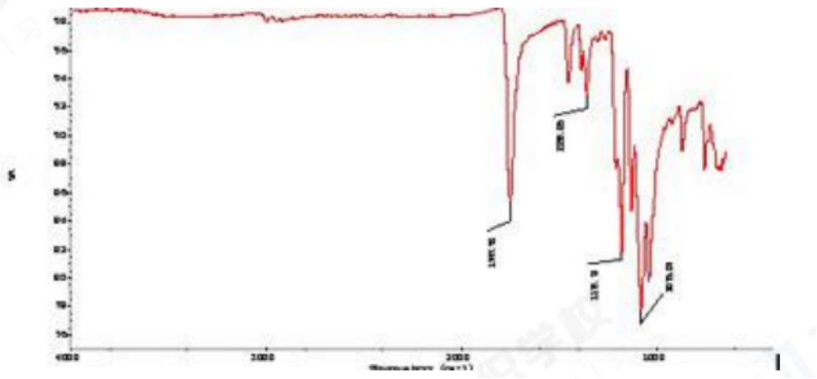 由红外吸收光谱图可见在 1747cm-1 左右有双键伸缩振动强的吸收峰,C-O伸缩振动在1076cm-1 左右,1179cm-1 左右有二个最强的吸收峰,表明该纤维具有酯类特征的吸收峰,属聚酯家族。但 C=O 伸缩振动频率位置相应与苯环共轭的聚酯类要高,强度要弱。