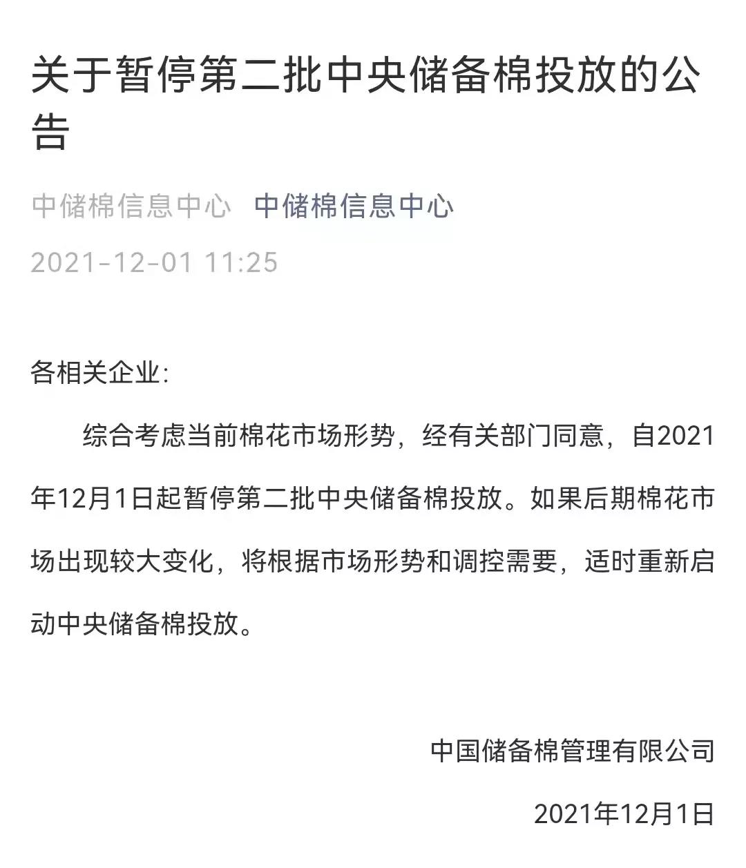 面对棉花期货市场脱离下游基本面的非理性波动,监管部门高度重视,今年储备棉投放遏制了棉花市场过度炒作,按照过往经验,如果明年期货市场出现暴涨暴跌的非理性波动,调控 政策仍然会成为有力的调控手段。