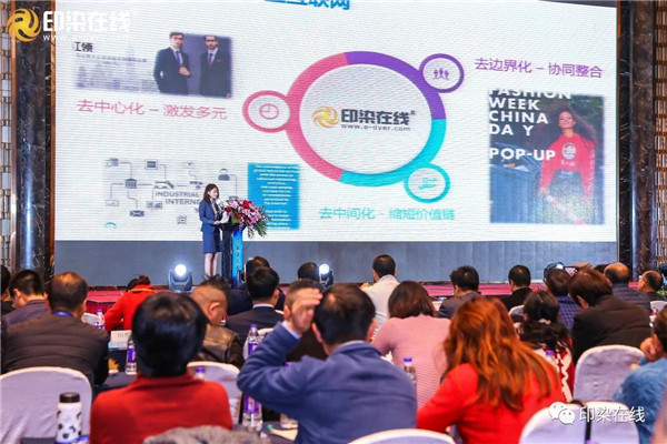 本次大会由印染在线商务发展经理对本次大会致辞演讲,介绍了印染在线及其发展历程。印染在线始终以“传播、开放、创新、匹配”为核心价值,秉承”共创、共建、共享、共赢“的发展理念,用互联网的思维服务于纺织印染供应链企业。田雅婷经理重点分析了”互联网+“新时代,产业互联网发展前景。