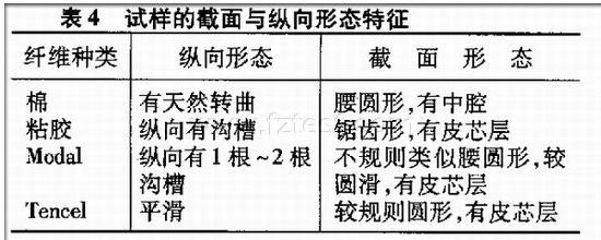 纤维的形态结构对其物理机械性能也有较大的影响。富强纤维的横截面结构与普通粘胶纤维和强力粘胶纤维不同,为较圆滑的圆形或接近于圆形的全芯层结构。高湿模量粘胶纤维为圆滑的皮芯结构,皮层厚度大于普通粘胶纤维,Modal纤维也为皮芯结构。Tencel纤维有规整的圆柱形外观,是以芯结构,但皮层很薄。