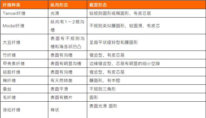 制作纤维的纵向片子和横截面切片,在显微镜下观察纤维的纵向及横向形态,根据形态特征差异来鉴别纤维,见表1。