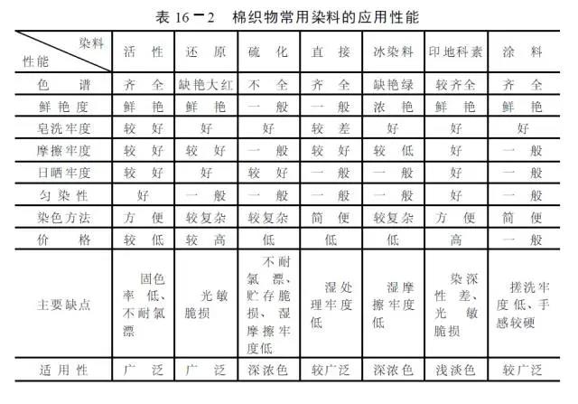 棉织物常用染料的应用性能。(见表16-2 所示)