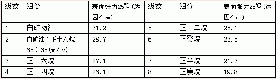 按AATCC―22标准测定,在ISO―4920防雨性能仪上测定。当试样透湿度在50%时,记录喷淋时间(分),时间越长抗透湿性越好,反之亦然。测两次平均值。②拒油性测定:拒油度按AATCC―118标准测试,测三次平均值。拒油度分8级,8级最好,1级最差。测拒油度试剂如表1所示: